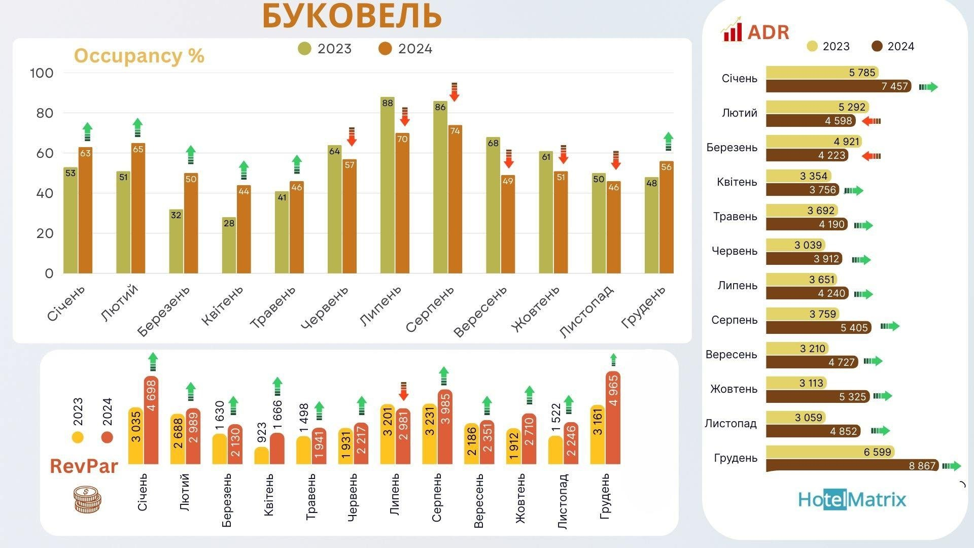 По-друге, посилення RevPAR — зростання на 29% - відображає ефективну політику оптимізації доходів. Збільшення цього показника, попри спад попиту в літній період, демонструє високу ефективність у використанні наявних ресурсів.Втім, на переконання аналітиків, для збереження лідерства в 2025 році необхідно зважати на зміну сезонних трендів. Адже Буковель все ще демонструє стабільну заповнюваність у зимові місяці, натомість у літній сезон відчувається загальний спад попиту.