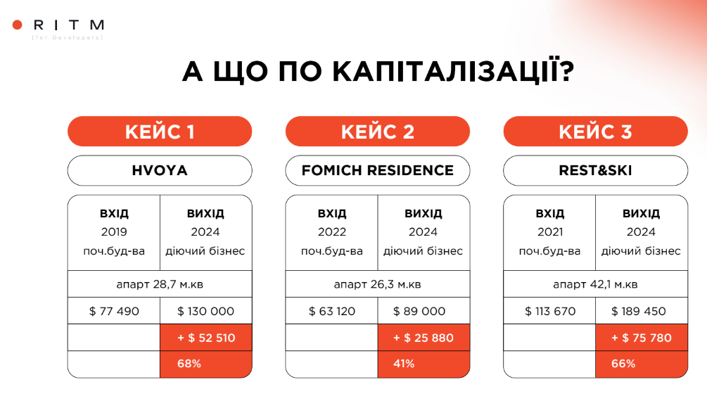 "Карпати почалися з одного бугільного підйомника. Це була історія про два готелі і ресторанчик із хорошою заповнюваністю, але на два місяці зими, поки лежав сніг. Бо не було ні комфорту, ні водойми, ні "пушок", ні SPA. Сьогодні це десятки інвестиційних проєктів, і саме під час війни сформувався запит на рекреаційно-інвестиційну нерухомість ", - пояснює експерт.