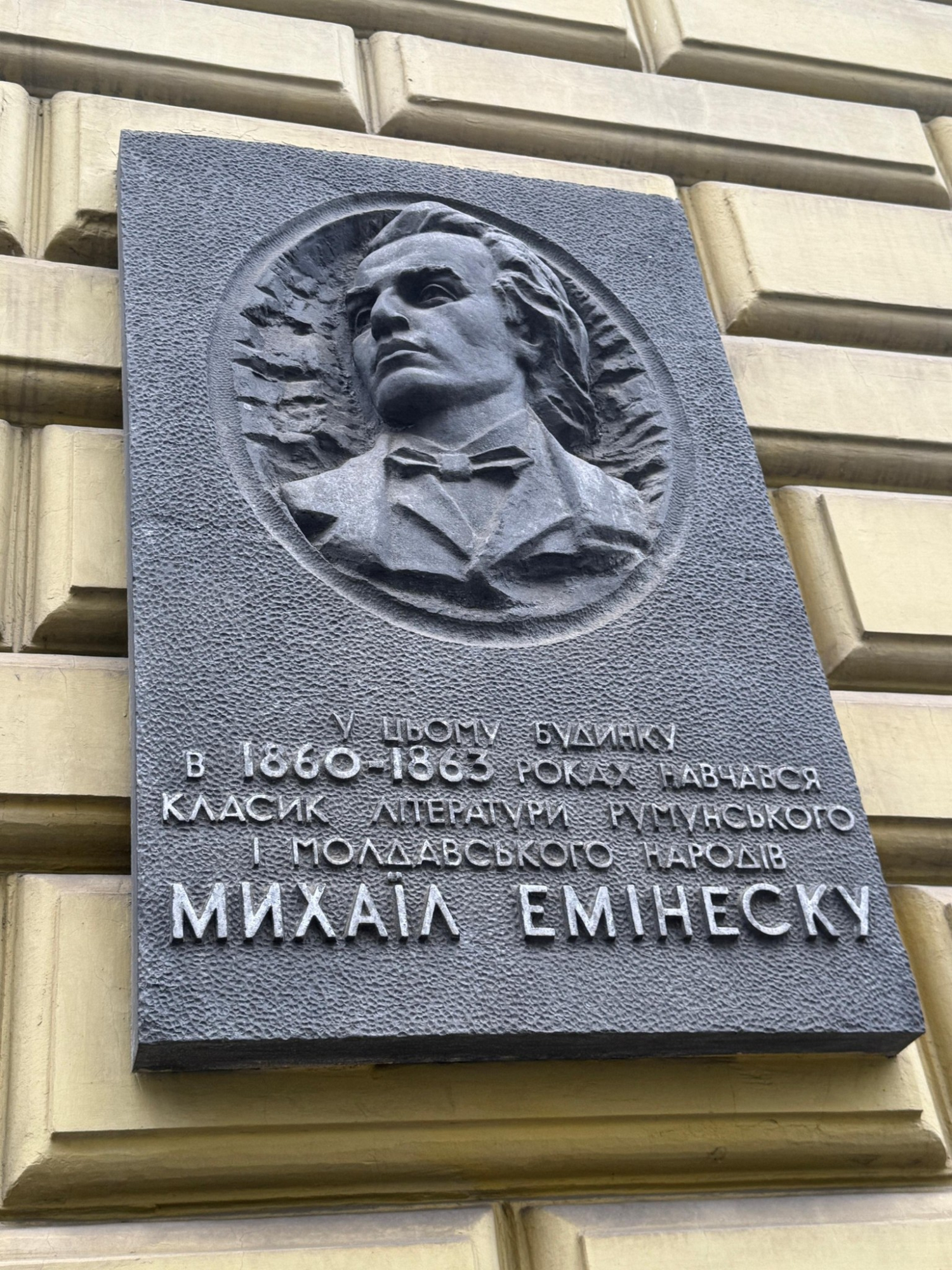 У Чернівцях із фасаду будинку на вулиці Івана Франка, 1 демонтували меморіальну дошку з барельєфом Міхая Емінеску.