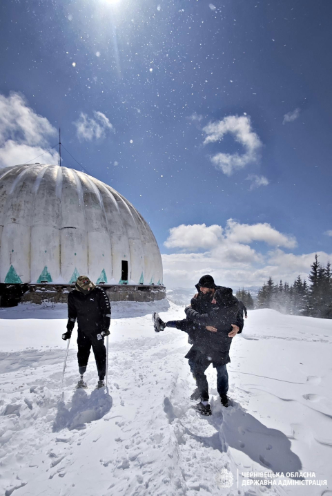 Маршрут, як розумієте, був непростим – снігу по коліна, мінусова температура, де-не-де заметіль. Далі — сама гора Томнатик, а на її вершині — загадкова і таємнича для багатьох колишня радіолокаційна станція «Памір».