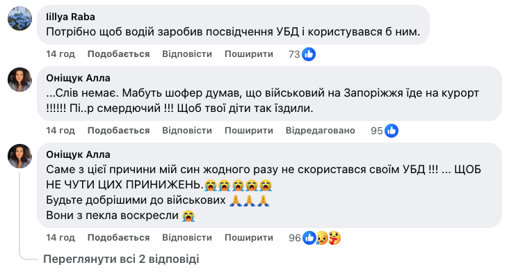 "Нехай військових безкоштовно возять ті, хто їм видав УБД", - заявив водій