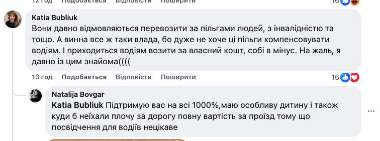 «Нехай возять їх безкоштовно ті, хто видав посвідчення учасника бойових дій, а нам це не вигідно», — відповів водій.