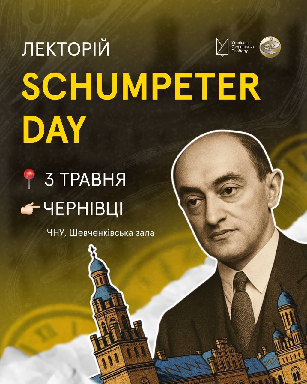 До того ж 2025 року відзначають 142-річчя з дня народження Йозефа Шумпетера — економіста, який увів поняття «творче руйнування» і підкреслив роль підприємців як рушіїв економічного розвитку. Schumpeter Day — це спосіб вшанувати його спадщину й актуалізувати її для сучасних викликів» — коментує Марія Семенюк, голова чернівецького осередку «Українських Студентів за Свободу» та головний організатор лекторію.