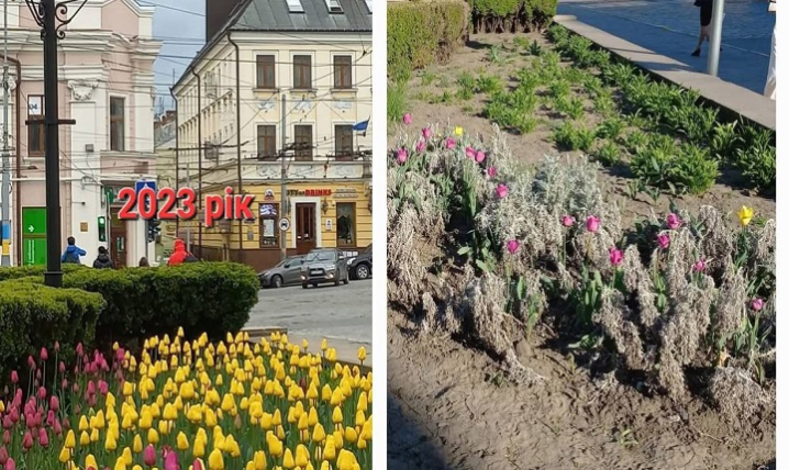 У центрі Чернівців жахливий вигляд клумб з квітами. Чернівчанка Олена Карпенко написала допис, у якому порівняла клумби 2023 року та 2025 року.