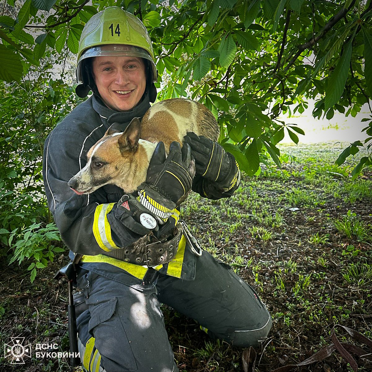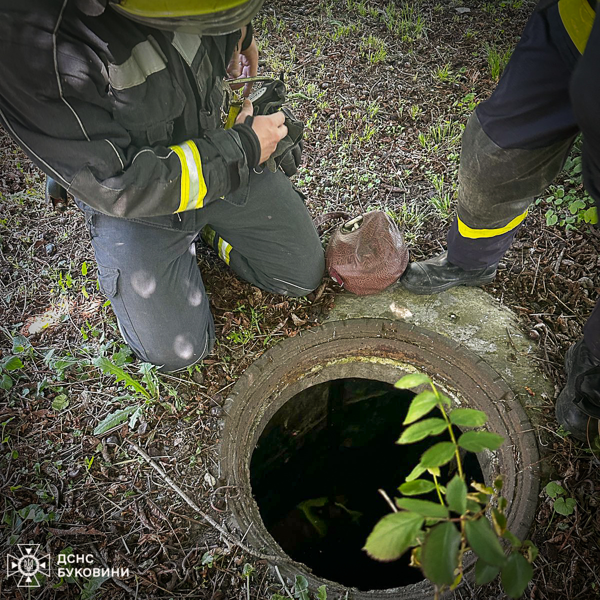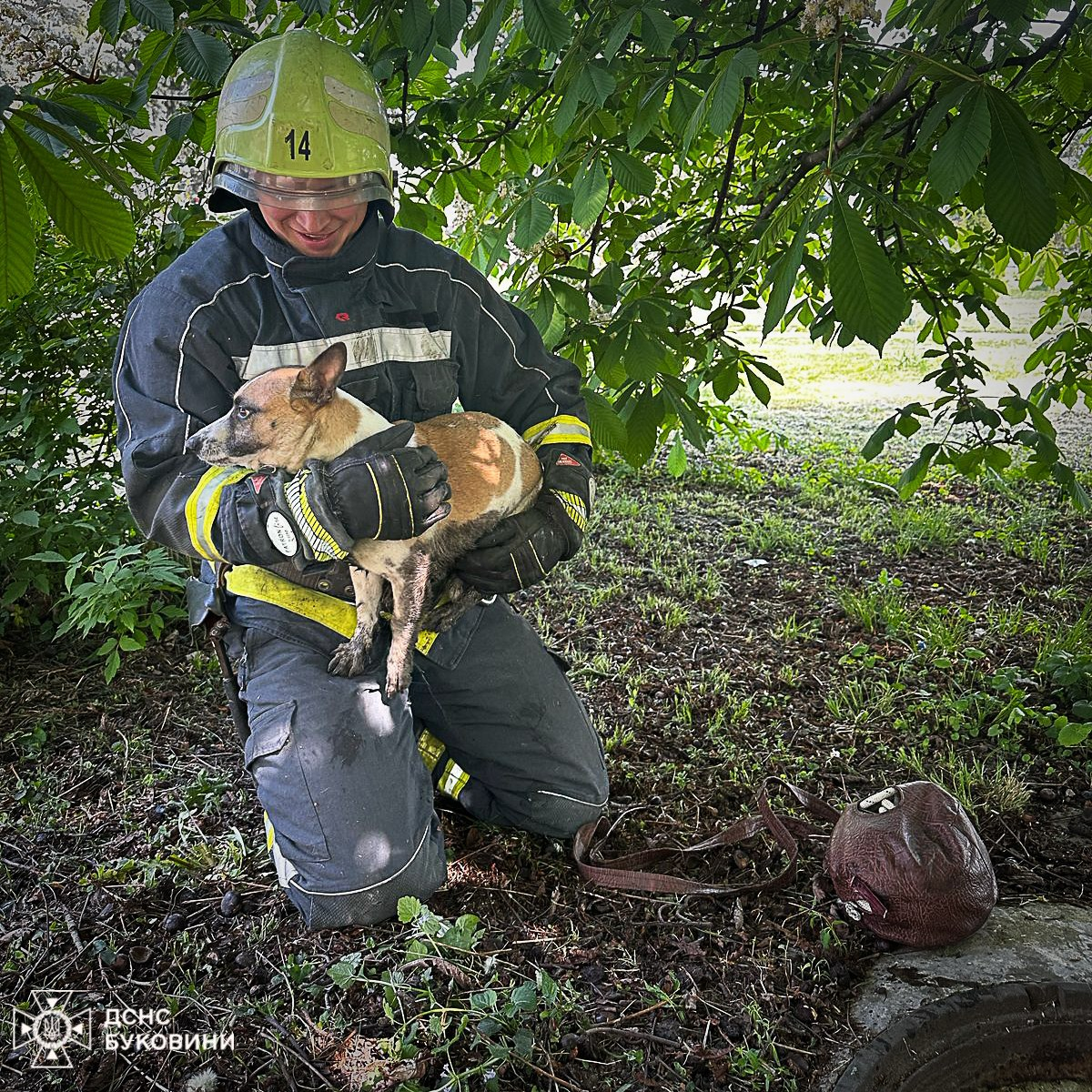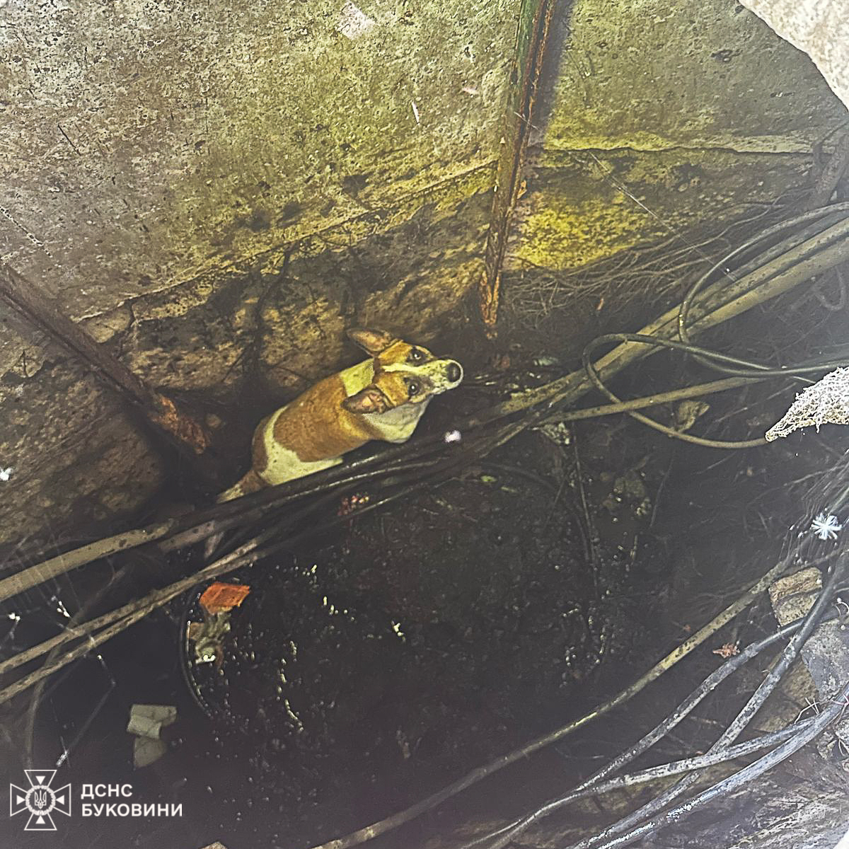 "Учора до Служби порятунку надійшло повідомлення від очевидців про те, що у селищі Глибока Чернівецького району до каналізаційного колодязя потрапила безпритульна собака.