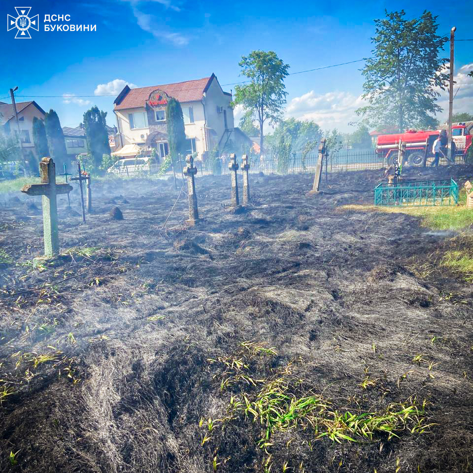 4 травня в селі Кам’янка Кам’янецької територіальної громади Чернівецького району виникла пожежа на території кладовища. Про це повідомляє ДСНС в Чернівецькій області.