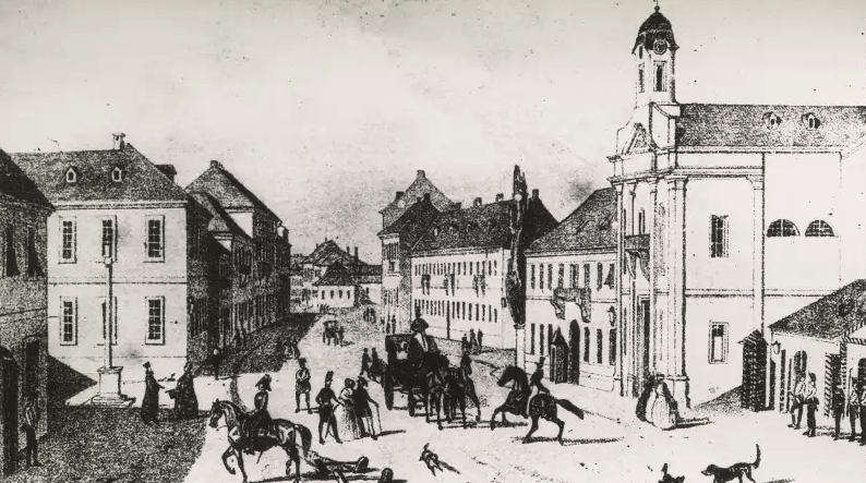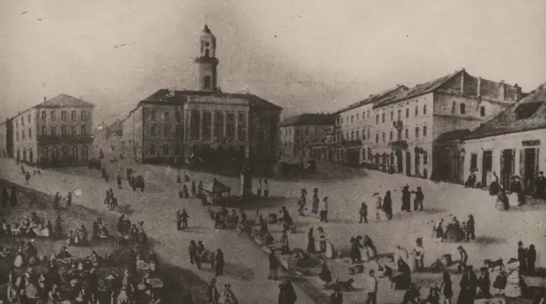 Ринкова (суч. Центральна) площа м. Чернівці, 1865 рік, ілюстрація з праці Р.Ф. Кайндля "Опис Чернівців"