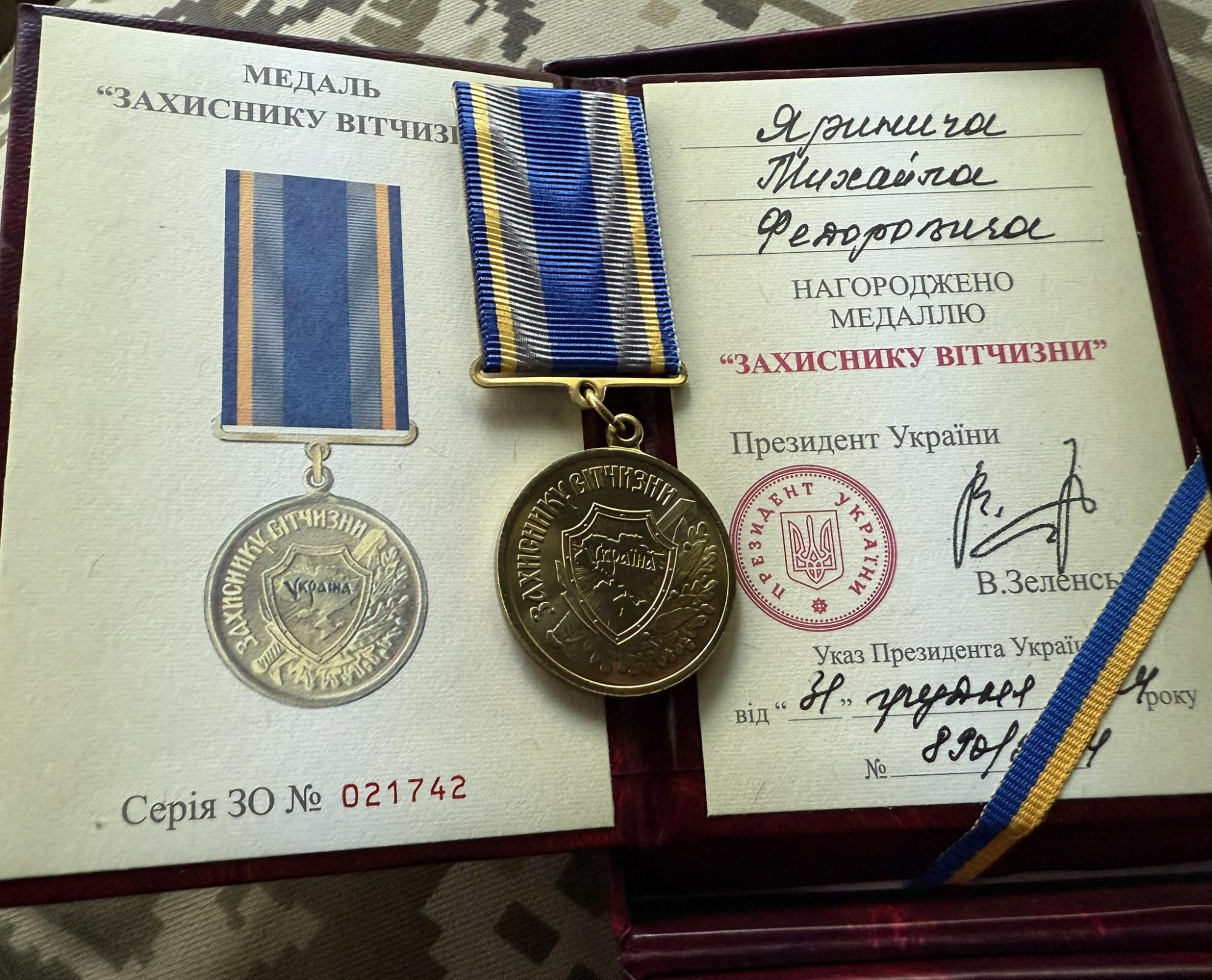 Колишній депутат Чернівецької міської ради, старший лейтенант медичної служби Михайло Яринич отримав медаль "Захиснику Вітчизни" від президента України Володимира Зеленського.
