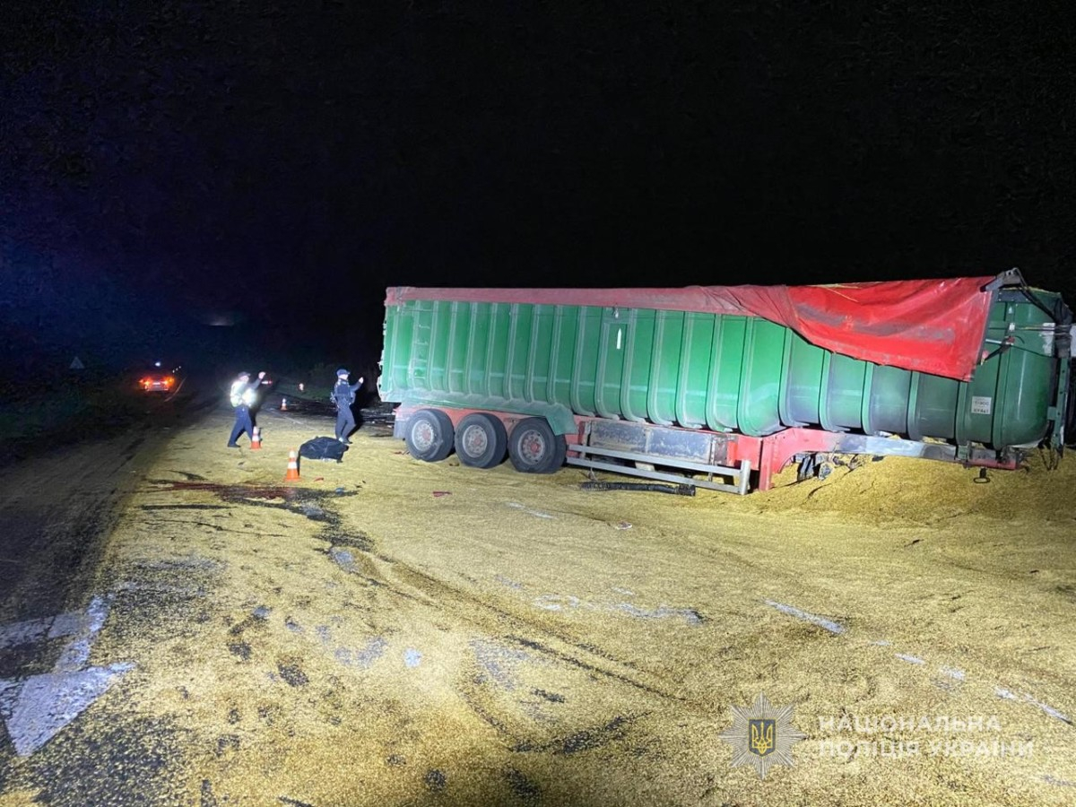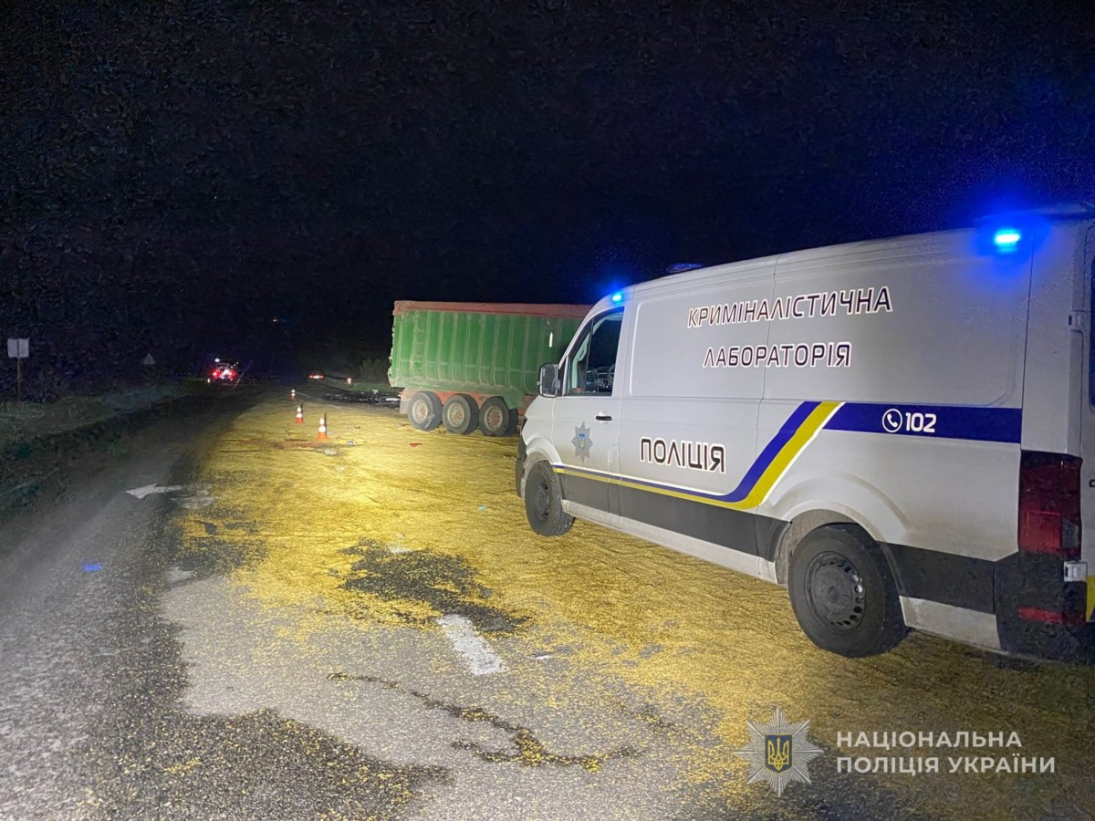 За попередніми даними, водій вантажного автомобіля «DAF» з напівпричепом, втратив керування через розрив колеса. Внаслідок цього вантажівка виїхала на смугу зустрічного руху, де сталося лобове зіткнення з іншим вантажним автомобілем «Volvo FH13460» із причепом.