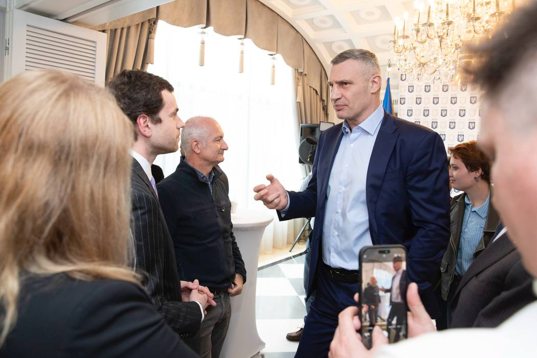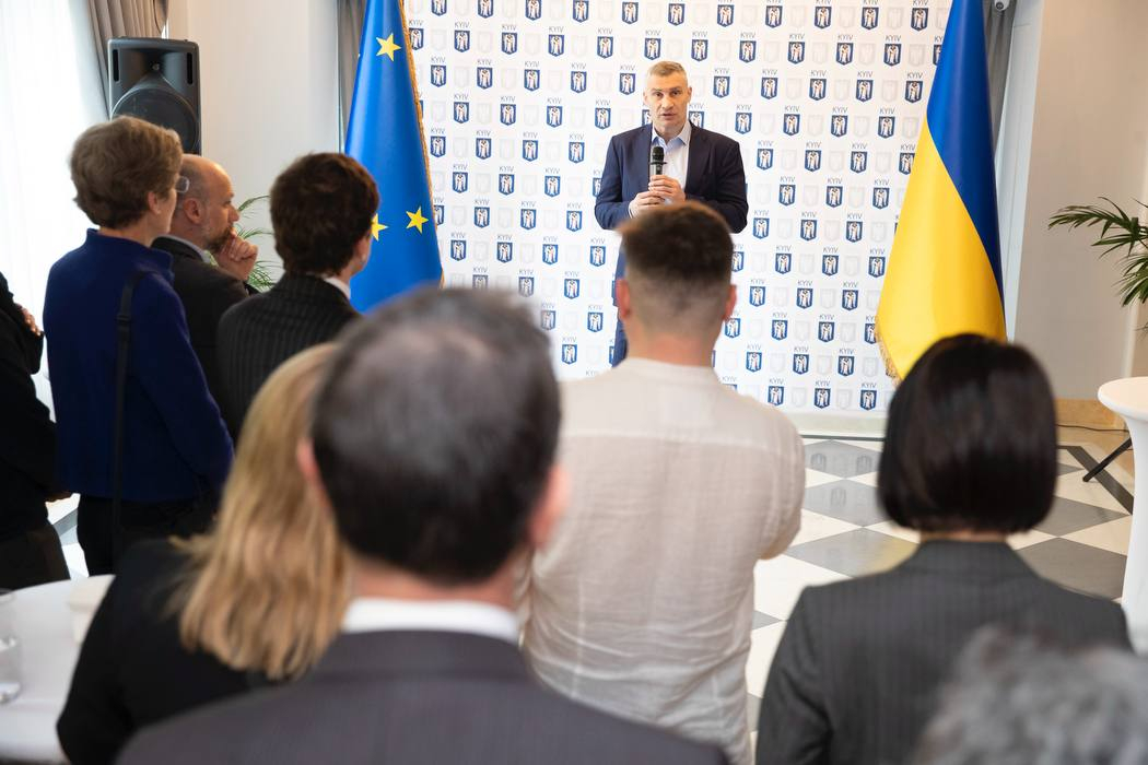Мер Києва Віталій Кличко з нагоди Дня Європи традиційно зустрівся з 25 послами та дипломатами іноземних держав. Подякував за допомогу і закликав посилити підтримку України у критичний момент війни. Про це Кличко повідомив у своєму Telegram-каналі.