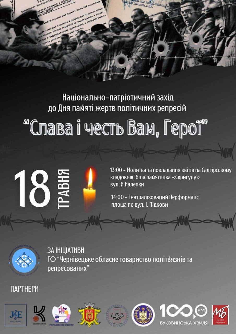 18 травня у Чернівцях відбудуться заходи з вшанування пам’яті борців за незалежність України.