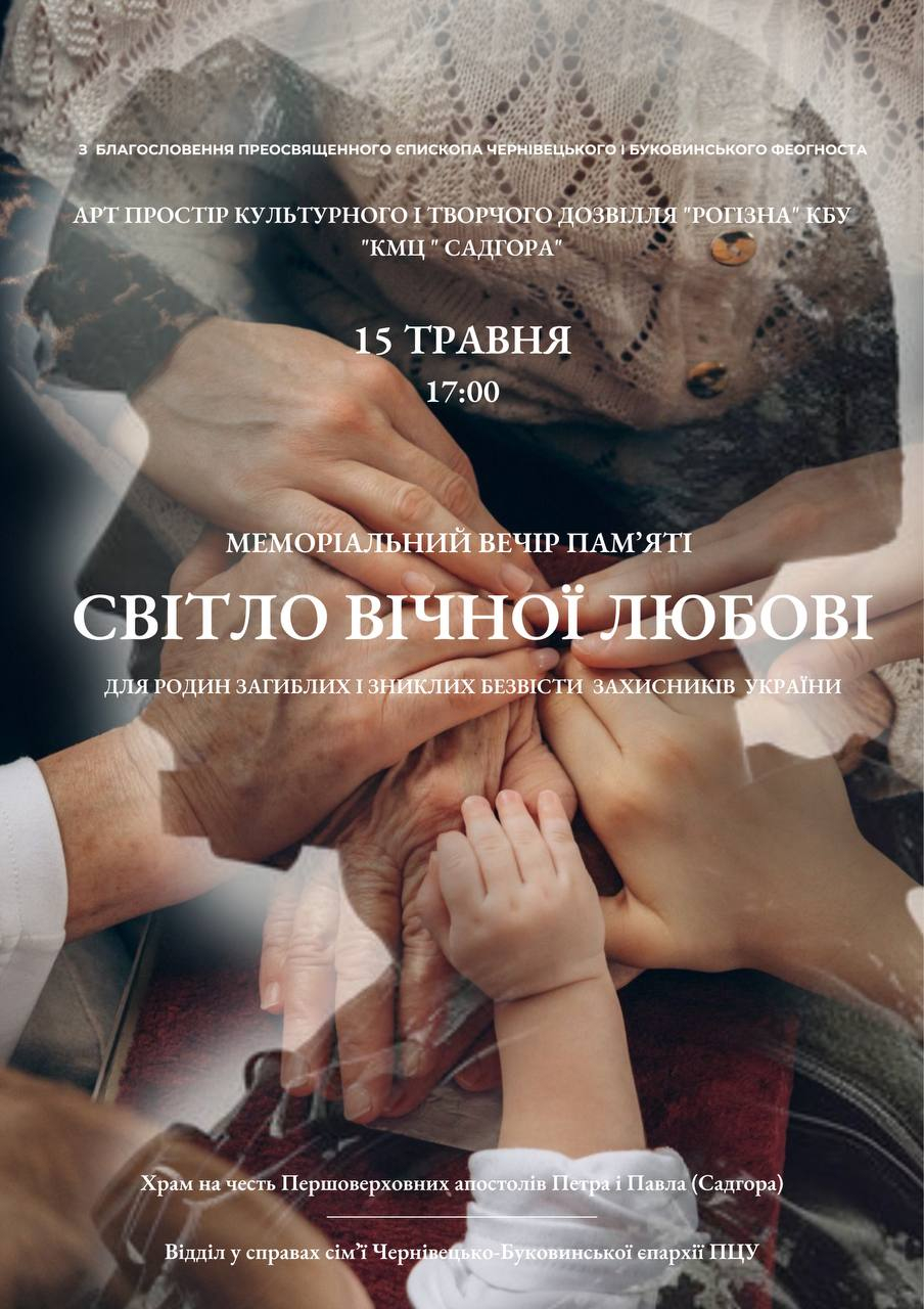 У Чернівцях відбудеться меморіальний вечір памʼяті - «Світло вічної любові» для родин загиблих і зниклих безвісти захисників України.