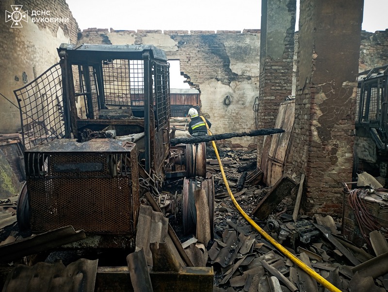 Вогонь охопив гараж з сільськогосподарською технікою на площі 500 кв.м. та знищив техніку, яка була припаркована у гаражах.