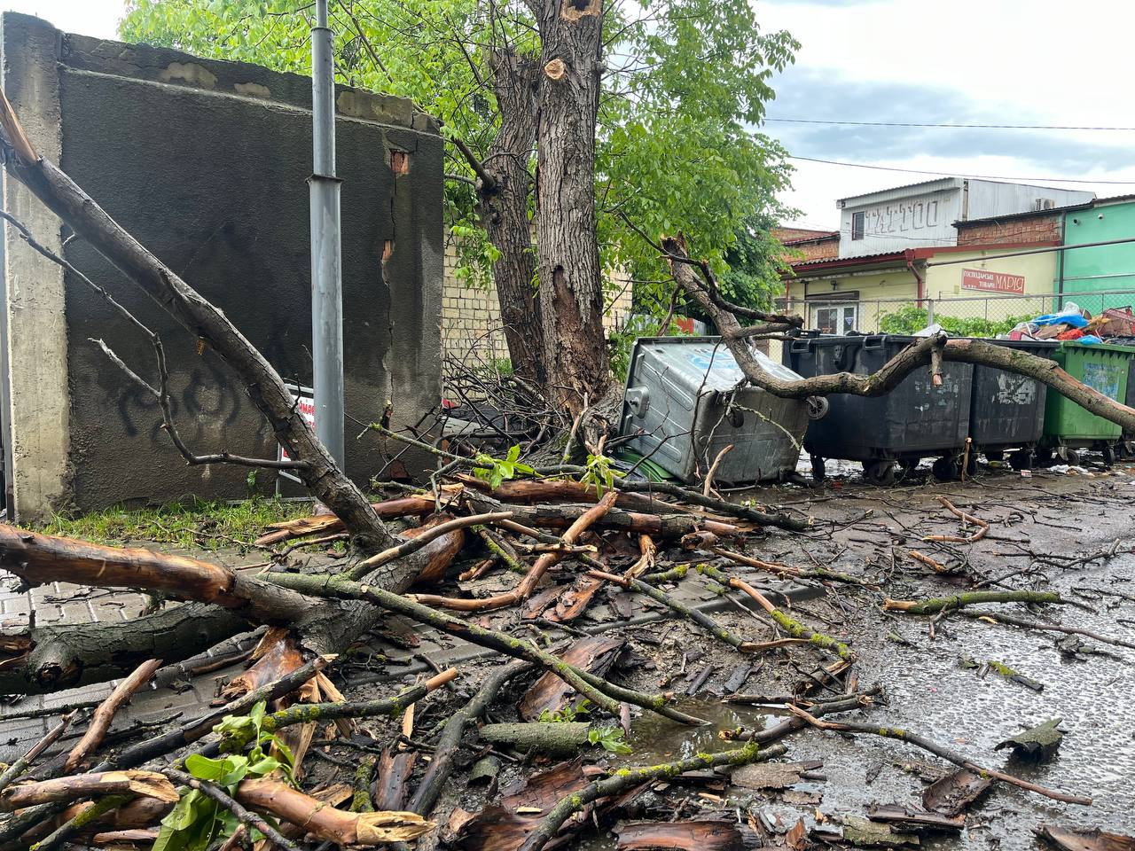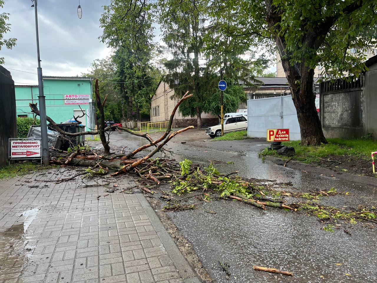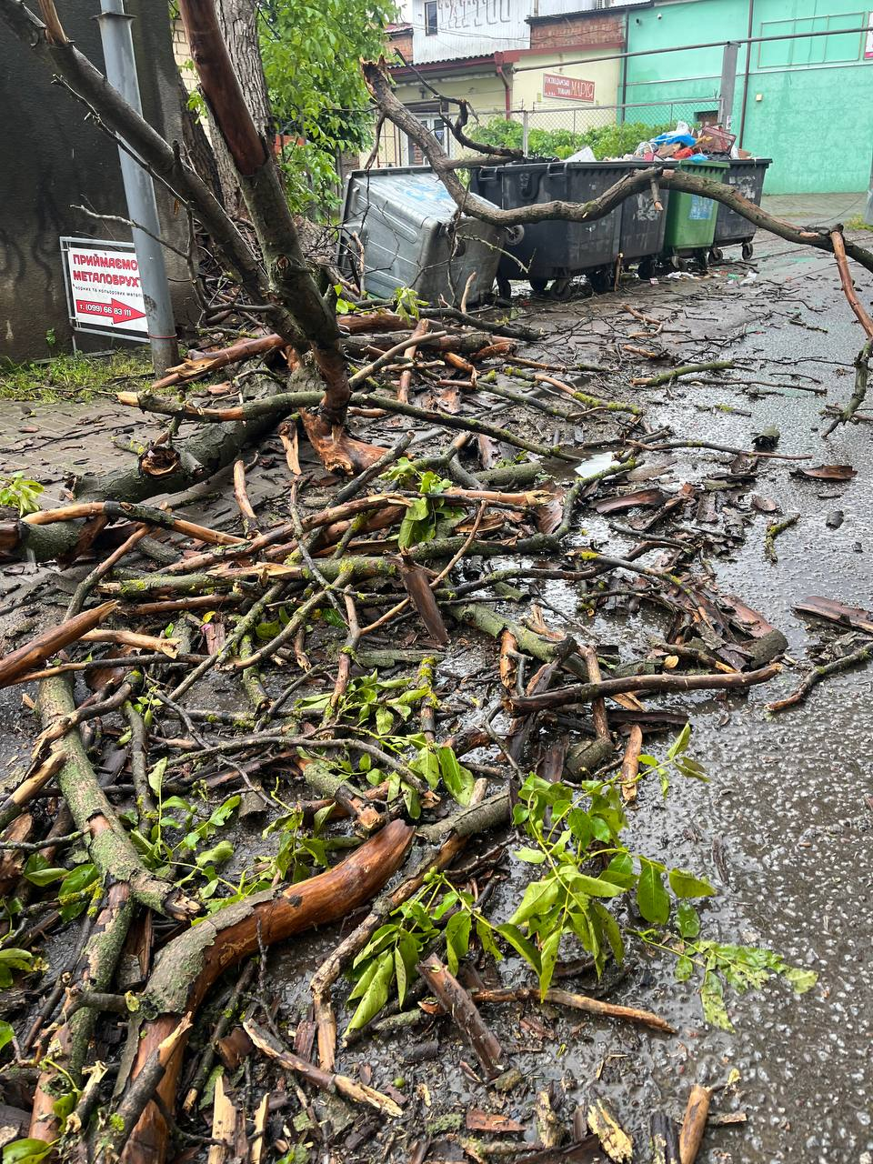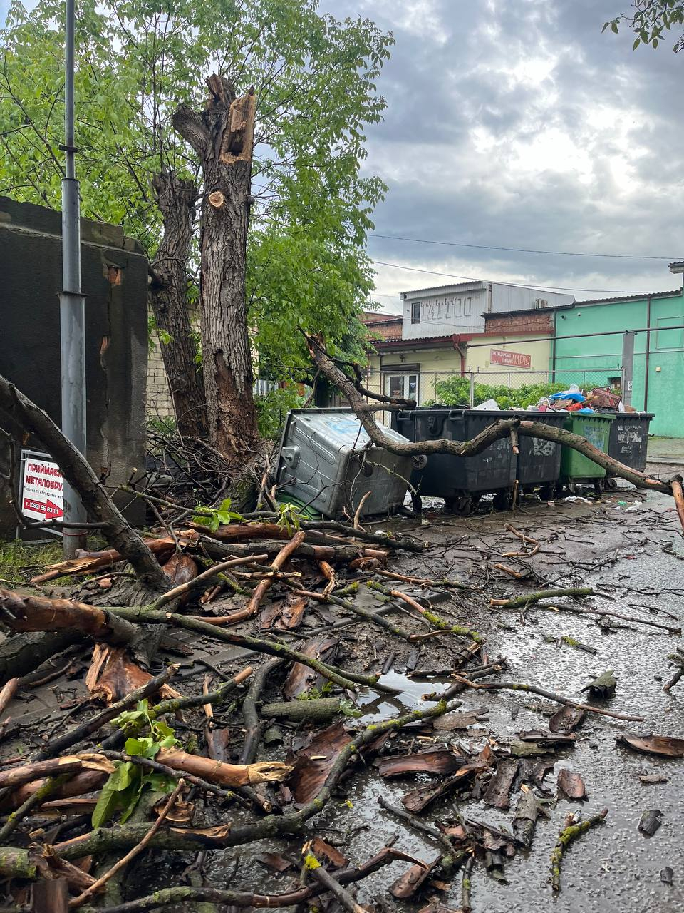 Поламані дерева та перекинуті сміттєві контейнери - це наслідки негоди у Чернівцях.