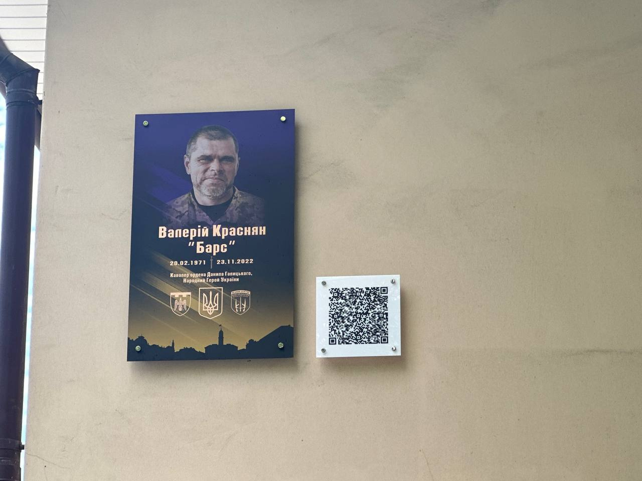 На будинку, де проживав легендарний кіборг з позивним «Барс», за адресою вул. Валерія Красняна, 1А, відкрили меморіальну дошку.