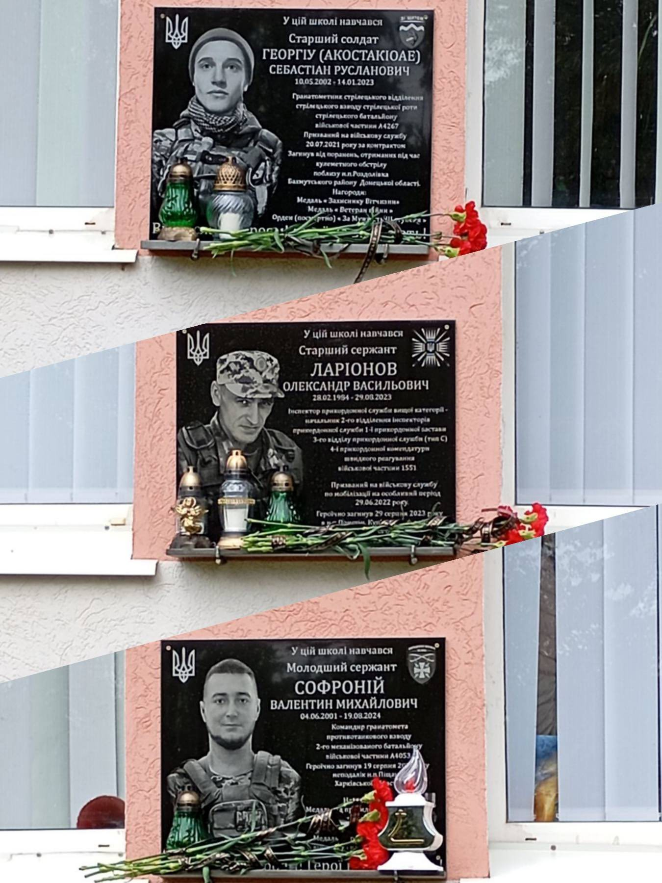 У селі Турятка, що в Тарашанській громаді, відкрили меморіальні дошки трьом загиблим захисникам – Олександру Ларіонову, Валентину Софронію та Себастіану Георгіу (Акостакіоає). Пам’ятні знаки розташували на фасаді місцевої школи. Про це повідомляє Чернівецька обласна рада.