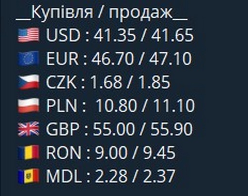 Купівля долара США залишилась на попередній позначці – 41,35, а курс продажу зменшився на 5 копійок - 41,65.