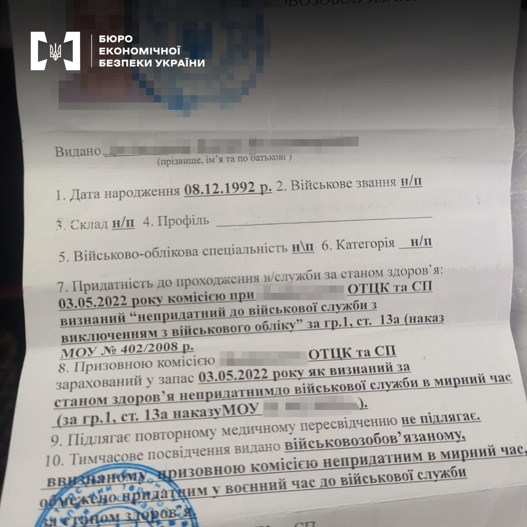 "Слідством встановлено, що у вересні 2024 року місцевий мешканець через месенджер Telegram отримав замовлення на виготовлення тимчасового посвідчення військовозобов’язаного. Цей документ мав свідчити про нібито непридатність до військової служби.