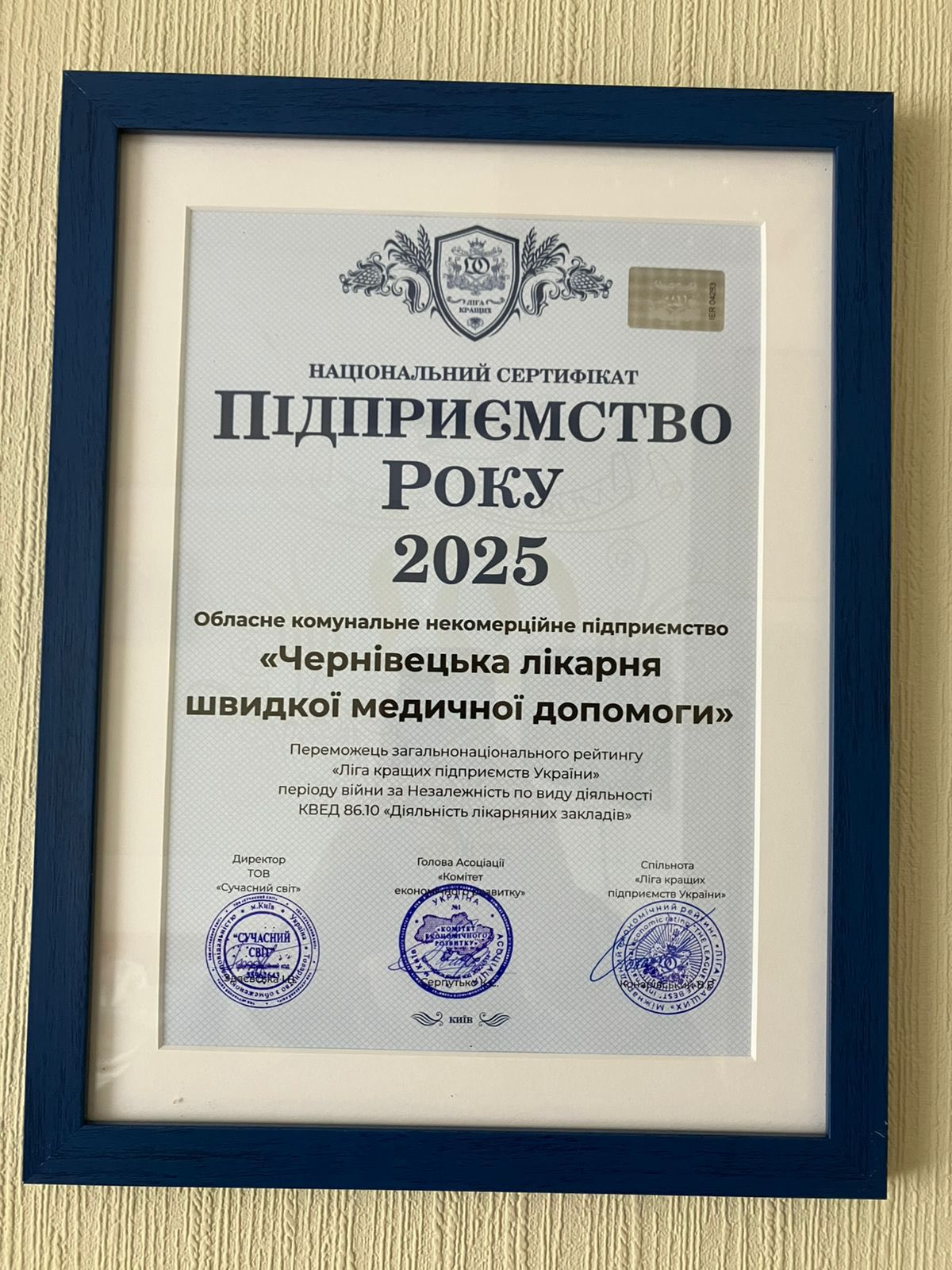 Нагорода «Підприємство року» — це престижна відзнака Міжнародного економічного рейтингу «Ліга Кращих». Вона присуджується за результатами всебічного аналізу ефективності підприємств і супроводжується Національним сертифікатом, що підтверджує бездоганну ділову репутацію закладу.