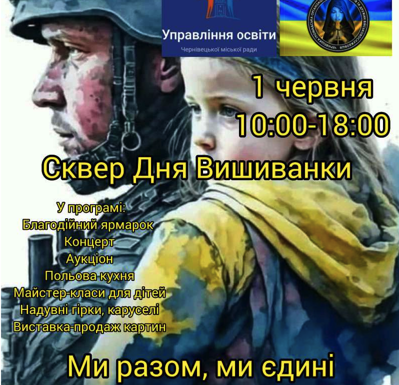 У Чернівцях у неділю, 1 червня, у сквері Дня Вишиванки в Чернівцях відбудеться благодійний захід. Захід спрямований на підтримку буковинських воїнів, які зараз відстоюють нашу свободу на передовій.