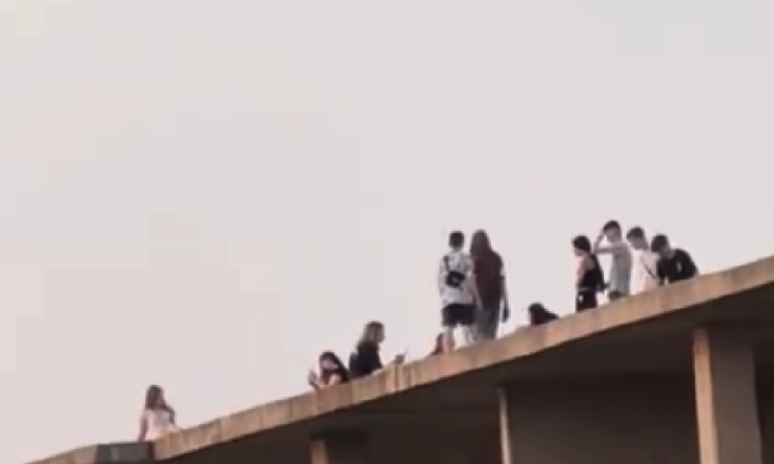На кадрах видно, як десяток підлітків ходять на найвищому поверсі будівлі без жодних засобів безпеки.