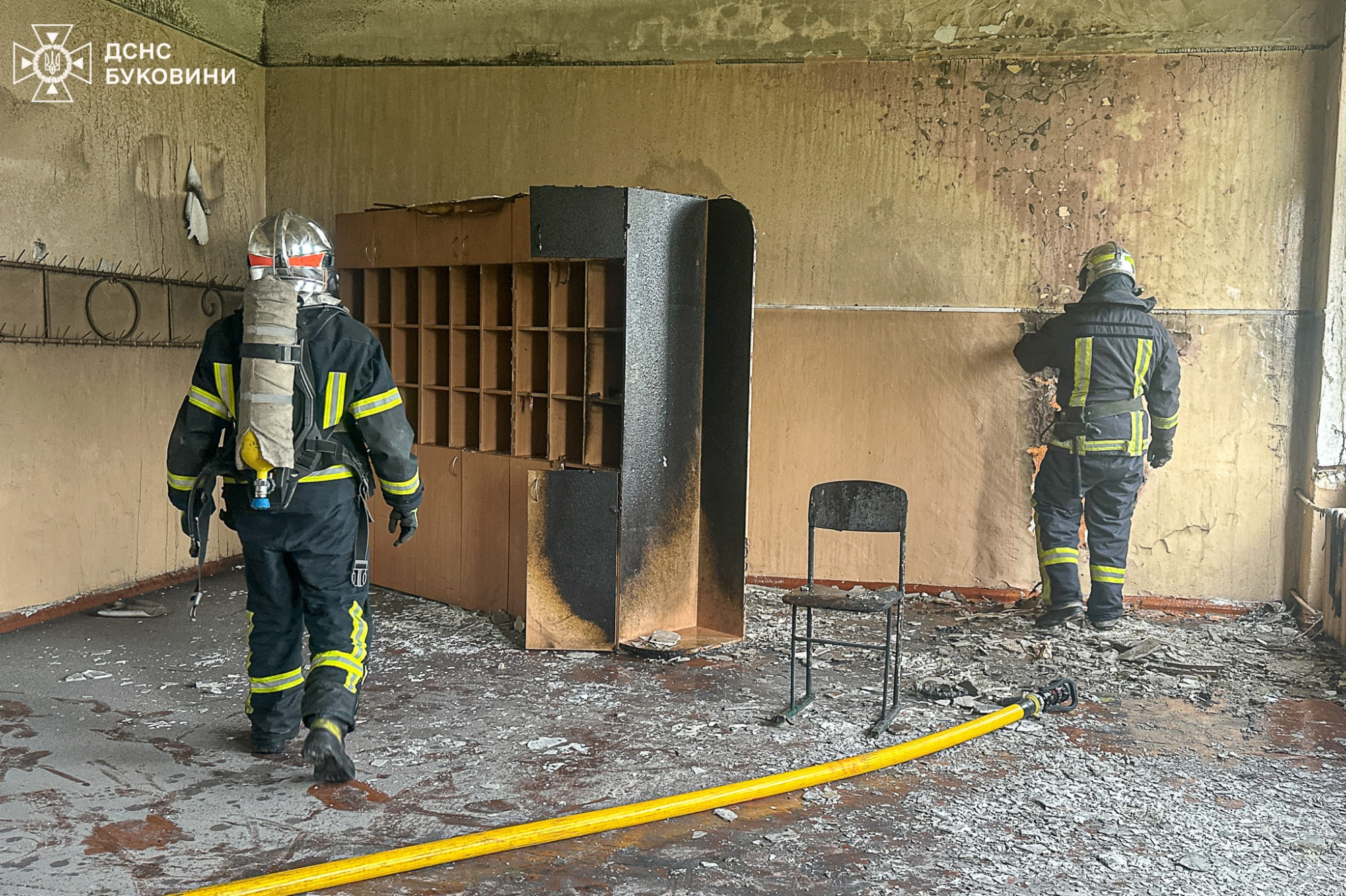 Вогнеборці ліквідовали пожежу у навчальному закладі міста Чернівці. Вогонь пошкодив приміщення класу та частково меблі. Двох підлітків, які надихались продуктами горіння, госпіталізували.