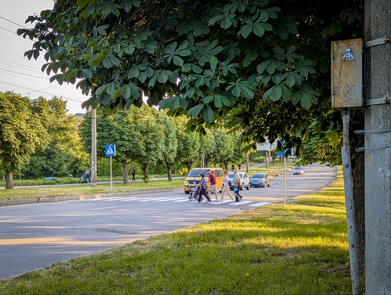 "128 пішоходів на годину: стільки людей користуються новим пішохідним переходом через вулицю Сергія Скальда у Чернівцях в позапіковий час.