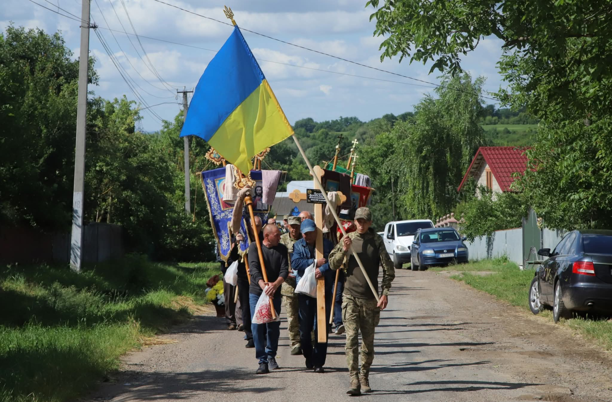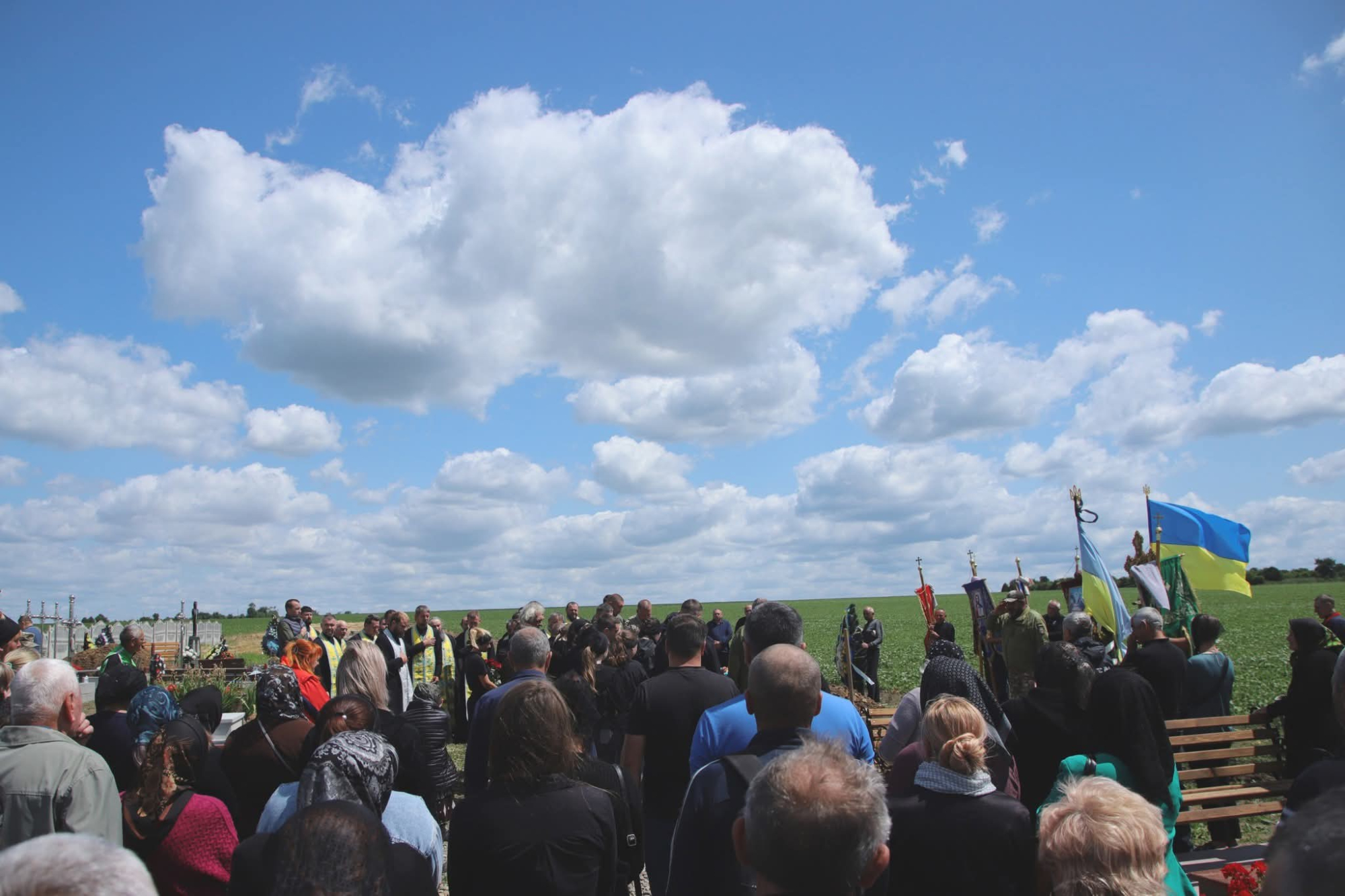 Живий коридор шани, сльози, схилені голови, квіти, Державний Прапор над труною — так громада висловила свою вдячність та пошану.