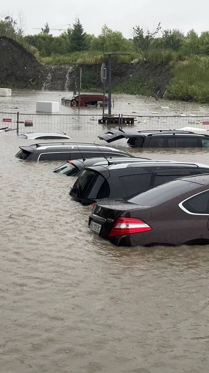 Львів та область потерпають від страшної повені. Припарковані авто повністю пішли під воду.