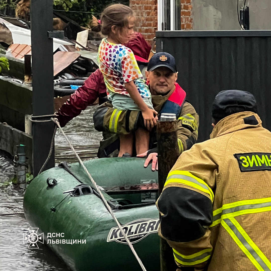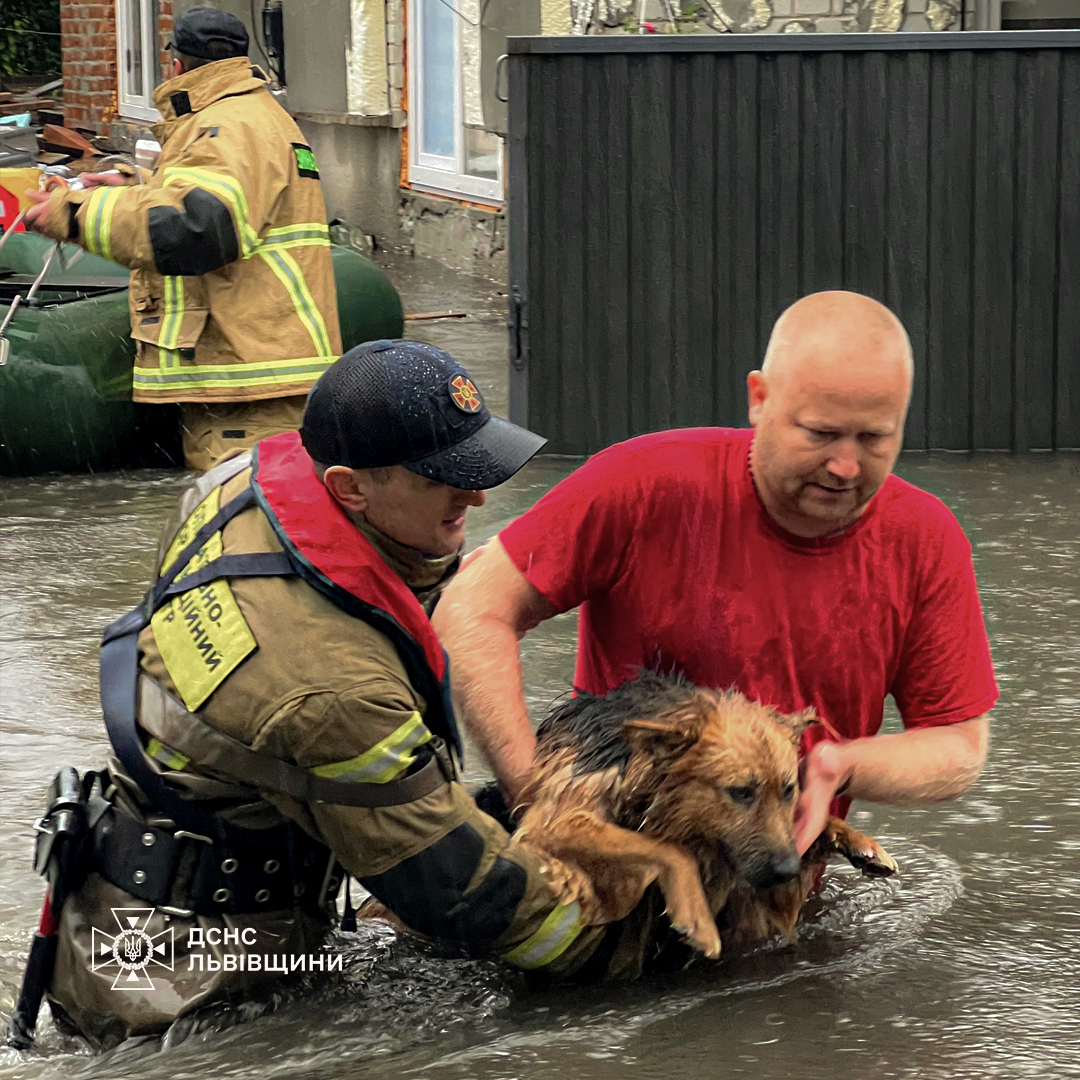 У селі Скнилів рятувальники врятували чотирьох людей, серед яких — двоє дітей. Також врятовано двох собак.