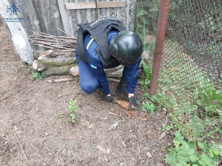Під час господарських робіт місцевий житель помітив підозрілий предмет і повідомив про це рятувальників. Фахівці групи піротехнічних робіт, які прибули на місце, ідентифікували знахідку як мінометну міну калібром 50 мм часів Другої світової війни. Боєприпас було вилучено та знищено у встановленому порядку.