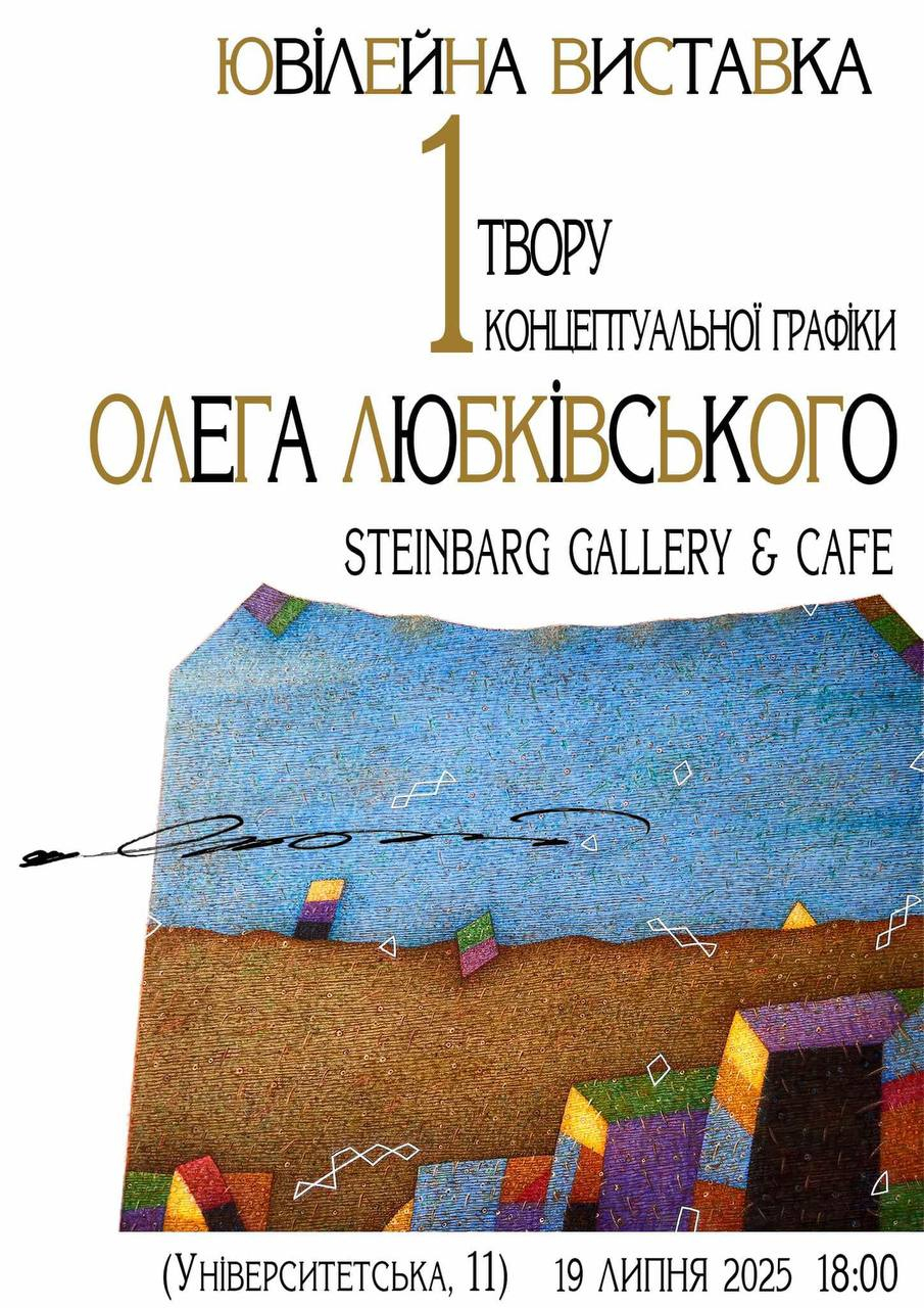 Уже 19 липня 2025 року в Steinbarg Gallery & Cafe (м. Чернівці, вул. Університетська, 11) відбудеться ювілейна виставка одного твору концептуальної графіки знаного художника Олега Любківського. Початок о 18:00.