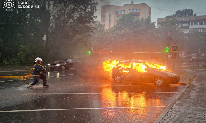 Автівка згоріла вщент. У Чернівцях на перехресті вулиці Рівненської та Героїв Майдану виникла пожежа. Спалахнув легковик Ford.