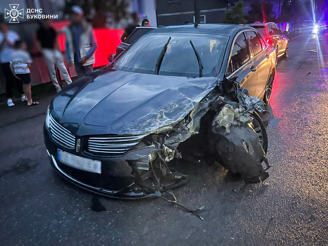 У Заставні водій Lincoln влетів у зустрічне авто. Водія буса витягнули рятувальники.