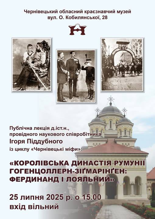 25 липня, о 15:00, у Чернівецькому обласному краєзнавчому музеї відбудеться публічна лекція доктора історичних наук, провідного наукового співробітника Чернівецького обласного краєзнавчого музею Ігоря Піддубного із циклу «Чернівецькі міфи»: