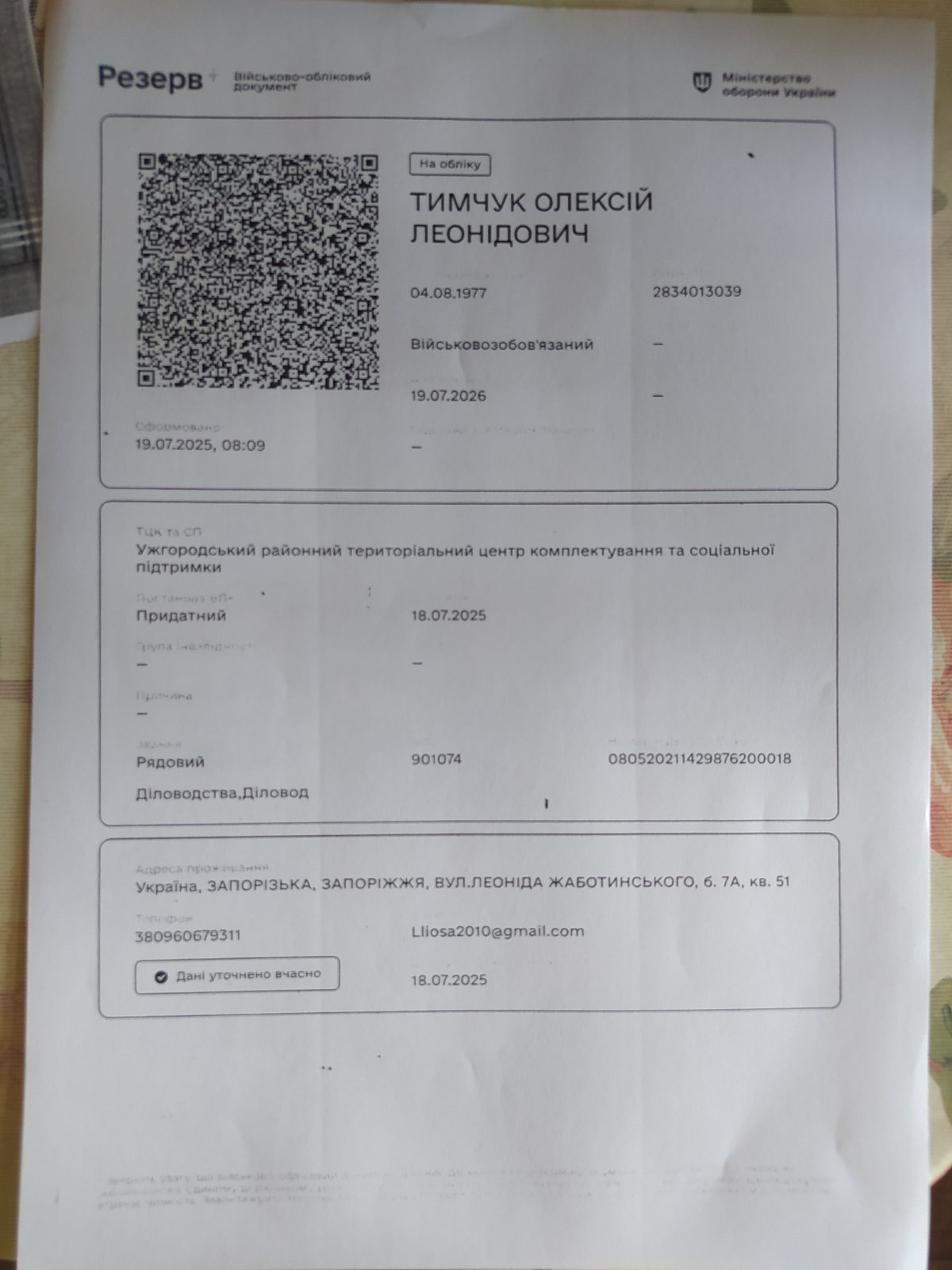 За його словами в п’ятницю 18 липня Олексій Тимчук приїхав до Ужгорода у відпустку з метою відвідати дружину та трьох дітей, які тимчасово виїхали із Запоріжжя та проживали в Ужгородському районі, але був затриманий співробітниками Ужгородського районного ТЦК та СП.