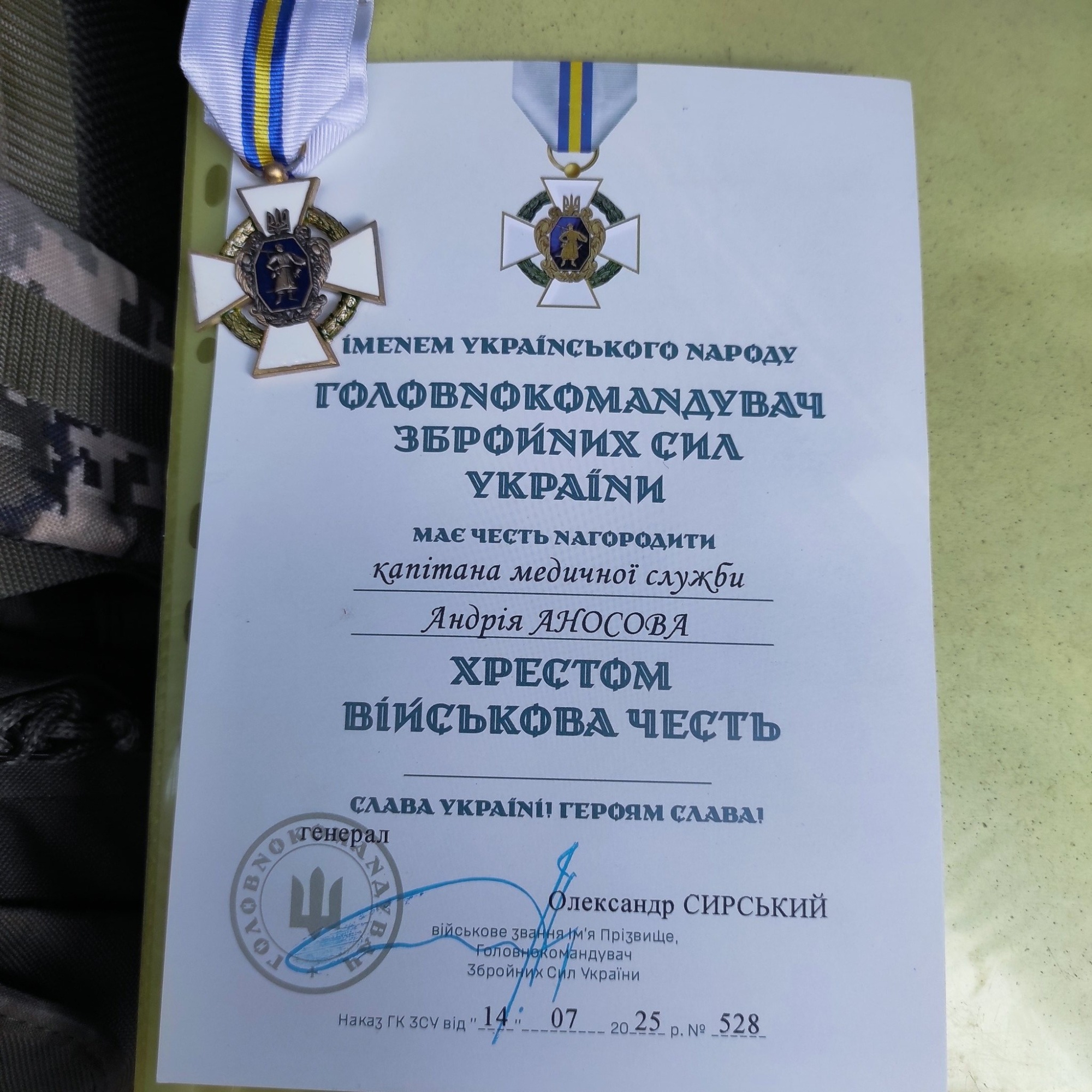Капітан медичної служби, лікар-анестезіолог Чернівецької обласної клінічної лікарні Андрій Аносов,удостоєний високої нагороди — хреста «Військова честь» від Головнокомандувача Збройних Сил України. Про це повідомляє Чернівецька обласна військова адміністрація.