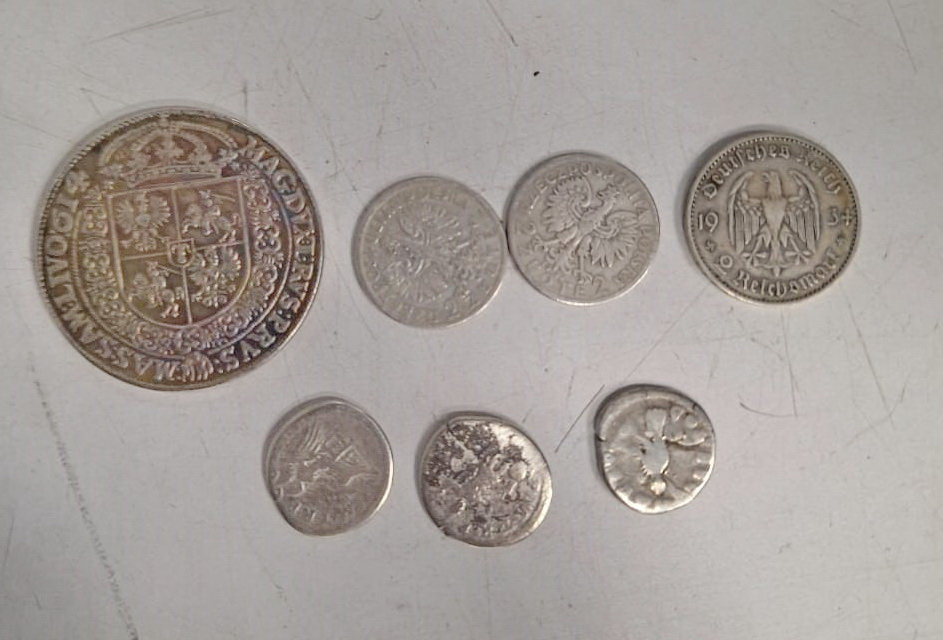 Всього правоохоронцями виявлено 2 монети Речі Посполитої, датовані початком XVII століття, 3 монети Священної Римської імперії того ж періоду. А також старовинну Литовську монету та Німецьку монету часів ІІІ Рейху.
