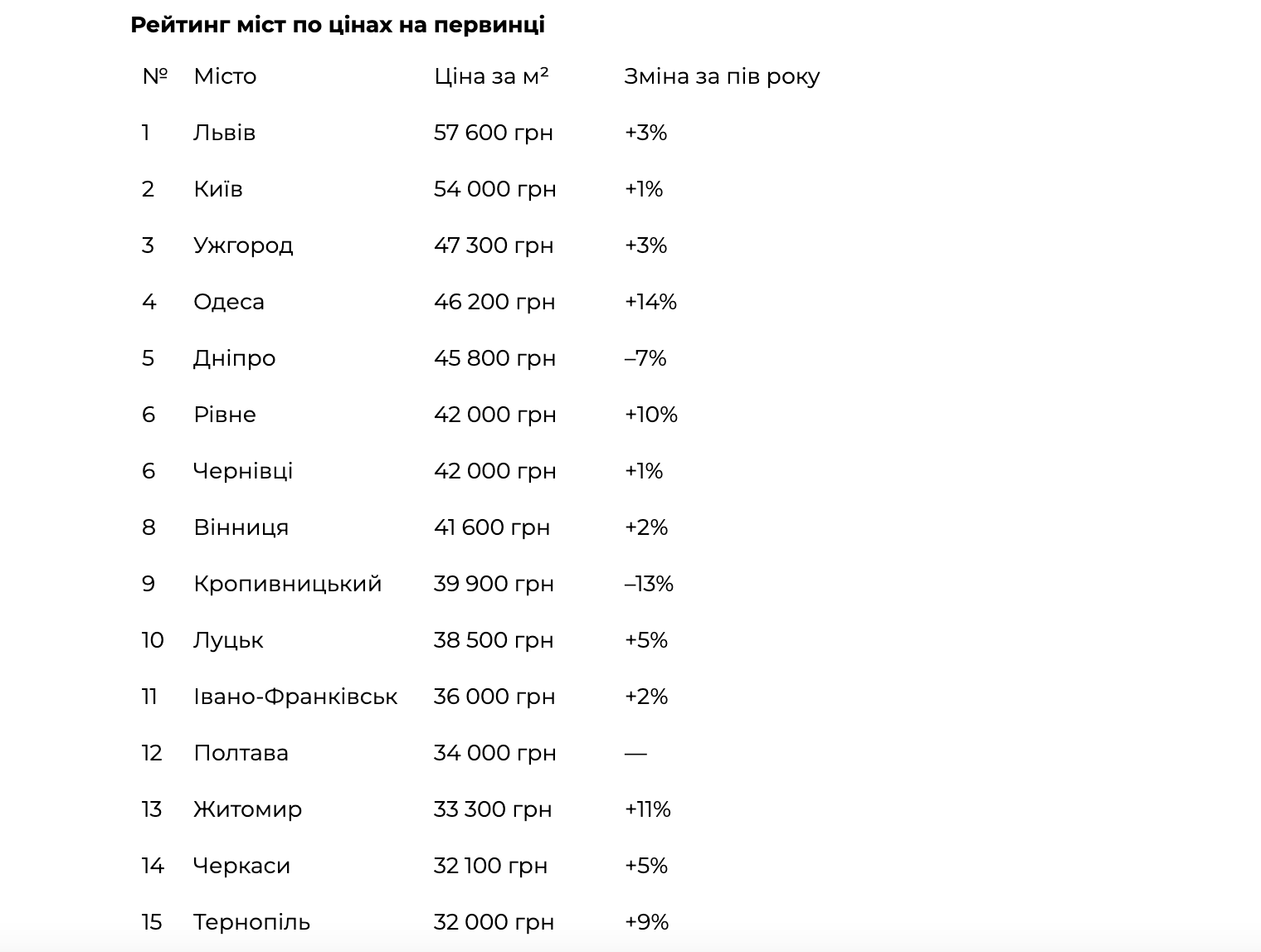 Рейтинг міст по цінах на первинці від ЛУН. У Чернівцях стабільна ціна - і це непогано, переконані фахівці.