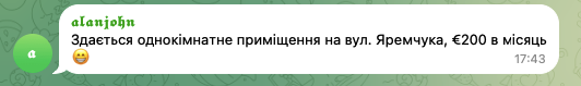 «Здається, однокімнатне приміщення на вул. Яремчука — 200 євро на місяць».
