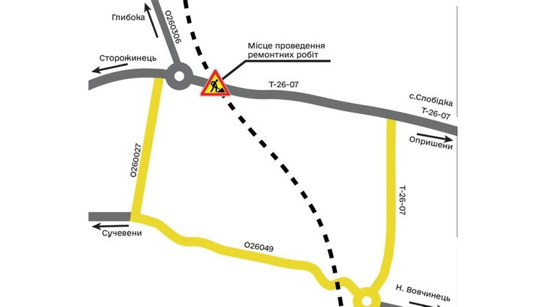 Рух обмежать до 23 серпня на ділянці автодороги Т-26-07 Кіцмань – Сторожинець – Глибока – Опришени.