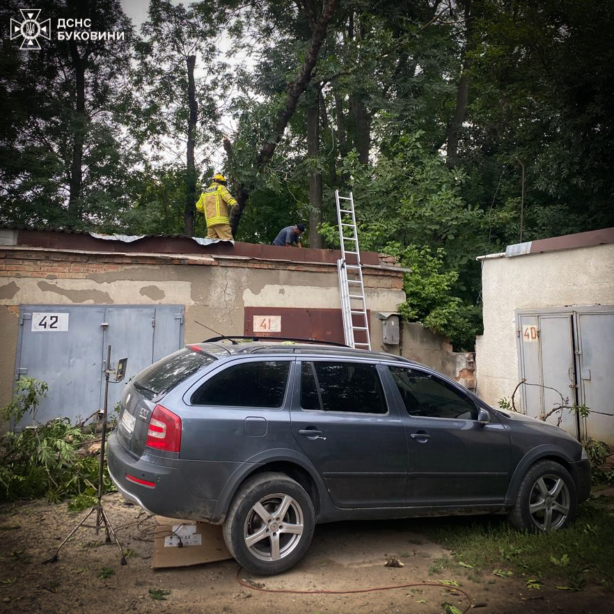 Минулої доби на спецлінію 101 надійшло повідомлення про те, що на території одного із гаражних кооперативів міста Чернівці впало дерево. Уламки гілок пошкодили гараж та припарковане поруч авто.