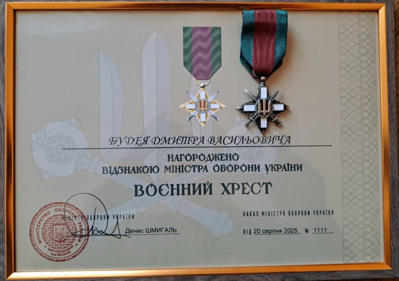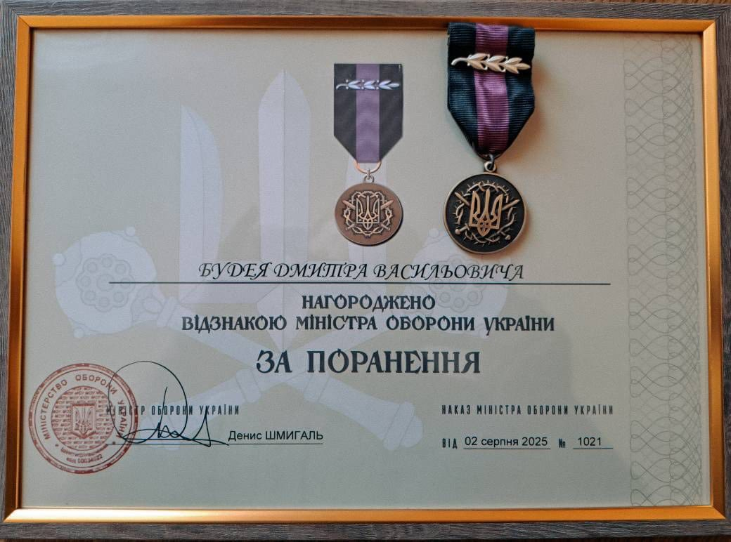 Капітан Збройних сил України з Глибоччини Дмитро Будей удостоївся двох відзнак від Міністра оборони – ордена "Військовий Хрест" та нагороди "За поранення".