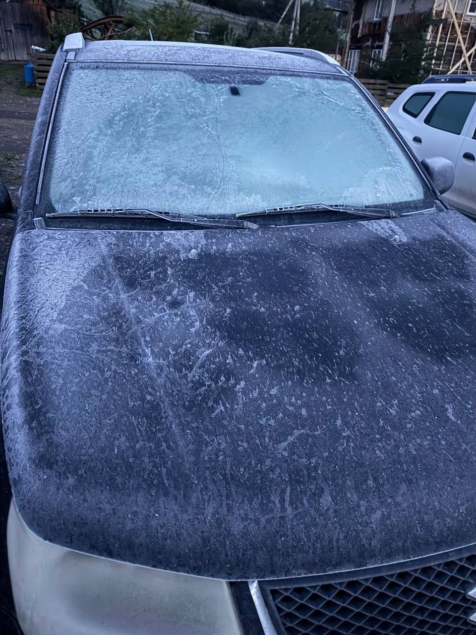 На фотографіях видно як внаслідок приморозку зранку все вкрилося інеєм.