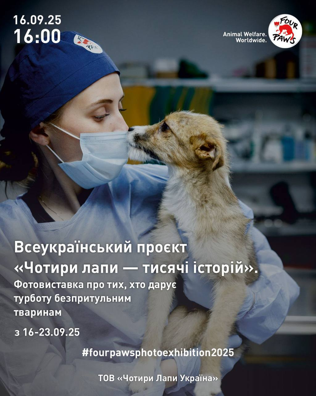 Стартує Всеукраїнський проєкт "Чотири лапи – тисячі історій”. Фотовиставка про тих, хто дарує турботу безпритульним тваринам.