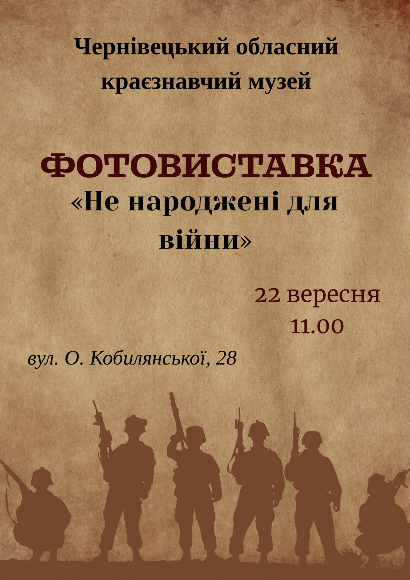 У Чернівцях відбудеться презентація фотовиставки "Не народжені для війни", присвячена воїнам 82-ї ОДШБр — тим, хто зник безвісти, перебуває в полоні чи загинув, захищаючи Україну.