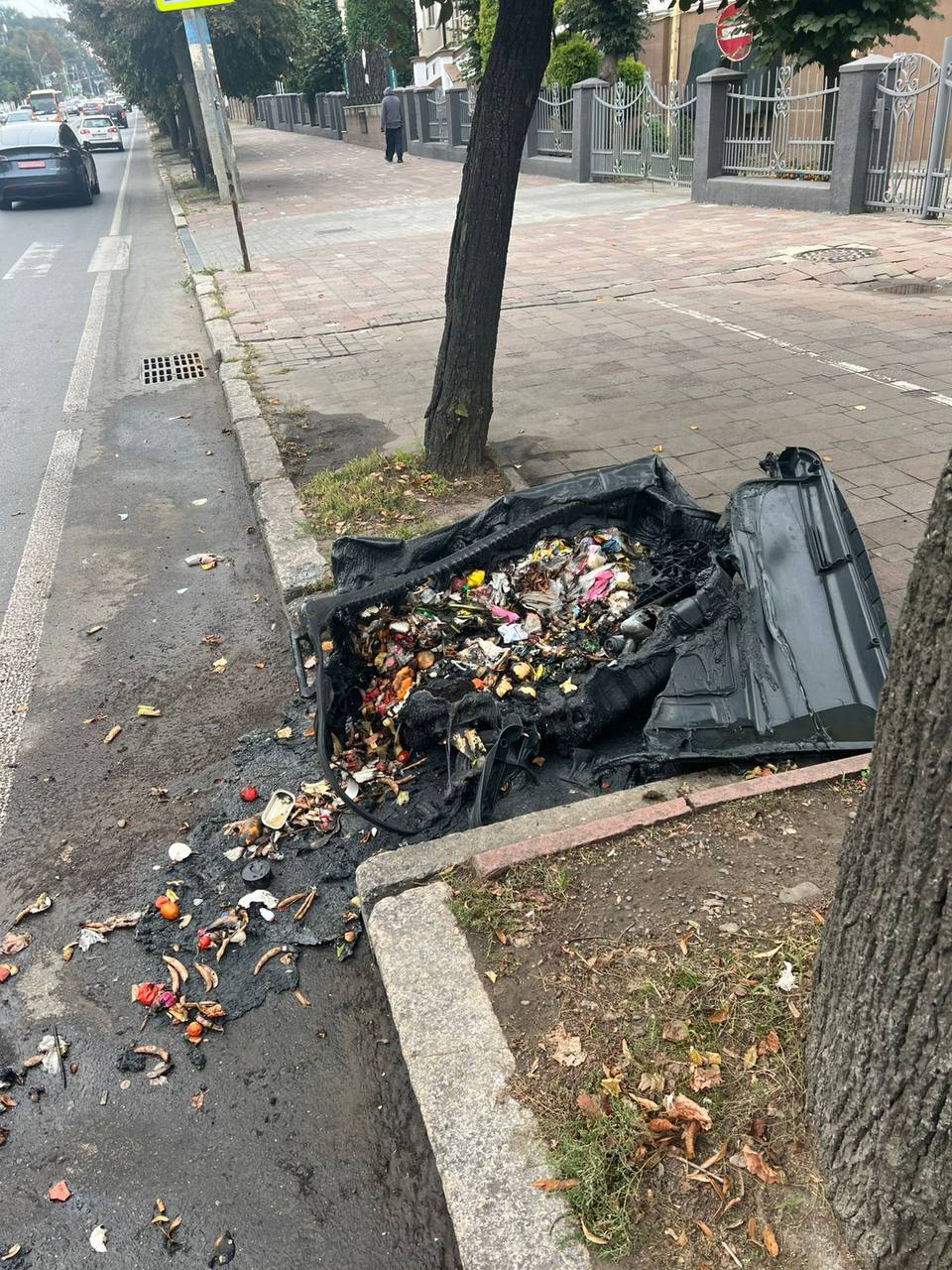 Непотріб валяється на тротуарі. У Чернівцях на Героїв Майдану невідомі спалили смітник