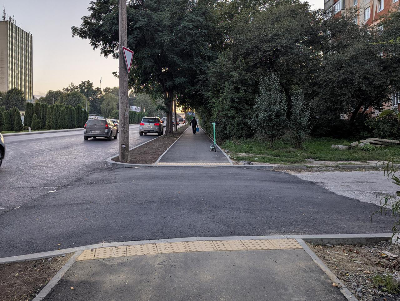 "Очевидно, не обійшлось без помилок: два пониження бордюрів зроблені відверто погано. Окрім того з абсолютно незрозумілих причин встановлені забори. Це я вважаю злочинною тупістю. Не може місто в одному місці їх демонтовувати, а в той же тиждень в іншому місці ставити. Зі всіх проєктів забори треба забирати", - вважає автор допису.
