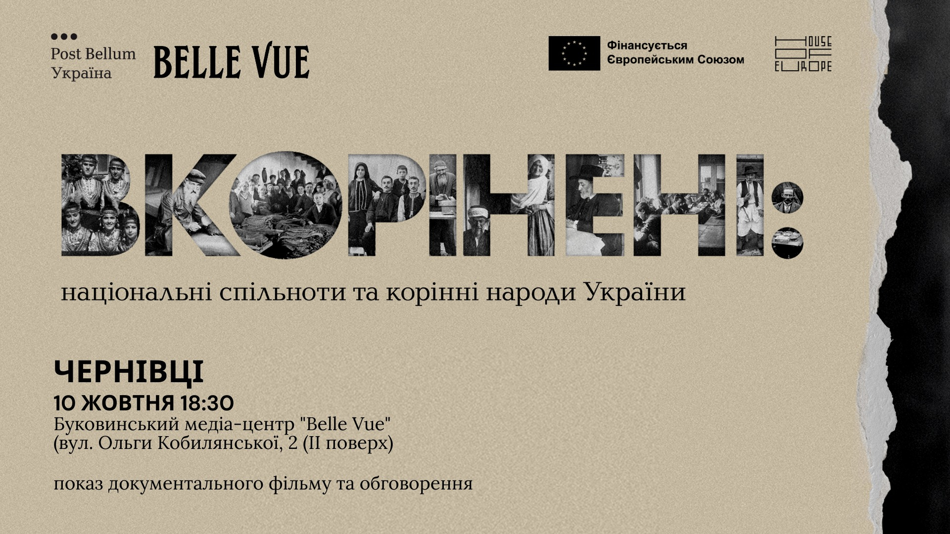 Фільм покажуть 10 жовтня, о 18:30 у Буковинському Медіа-центрі «Belle Vue» (вул. Ольги Кобилянської, 2, ІІ поверх).