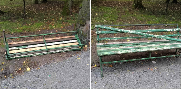 У ніч на 13 жовтня у парку Шевченка у Чернівцях невідомі зламали лавки та смітники.
